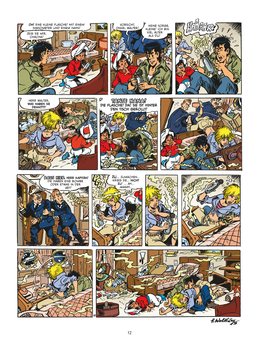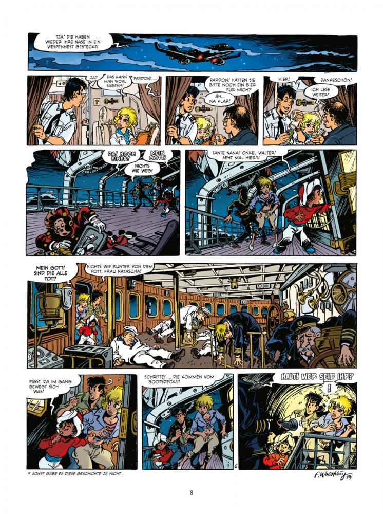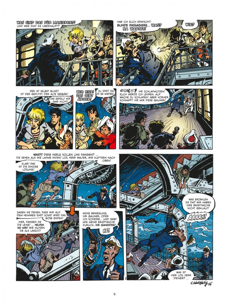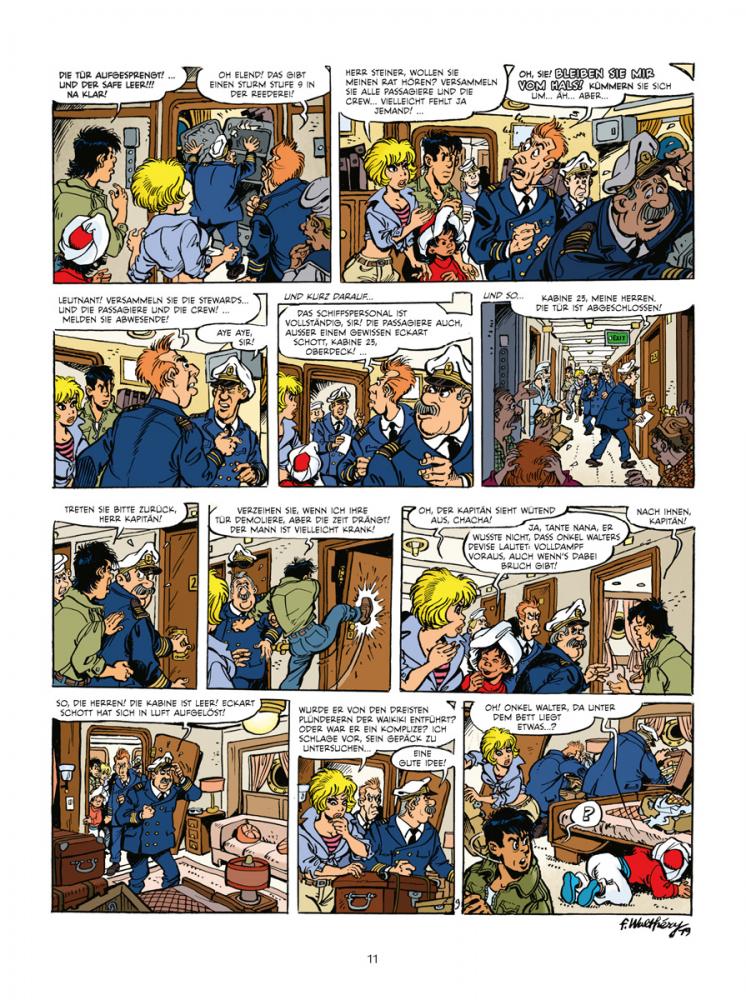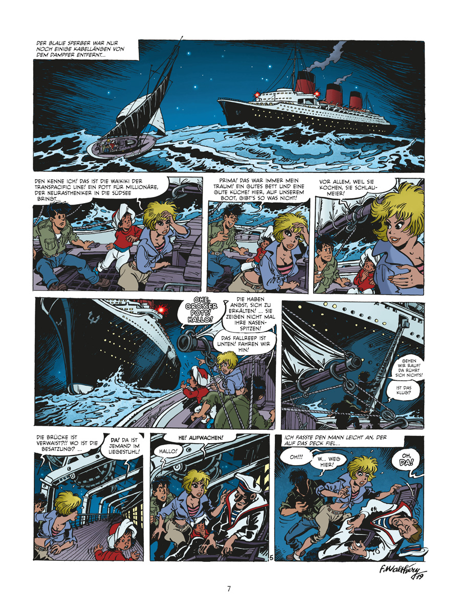 Auf der der Heimreise zusammen mit Walters Großvater und der kleinen Chacha auf dem Blauen Sperber sehen die drei ein helles Licht am Nachthimmel. Sie stoßen auf einen Luxusdampfer, der mitten im Ozean reglos im Wasser liegt. An Bord des Schiffes schlafen Passagiere und Crew, unbekannte Verbrecher haben sie und den Tresor ausgeraubt.